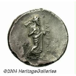 Carian Satraps. Hidrieus. 351-343 B.C. AR tetradrachm (24 mm, 14.79 g). Laureate head of Apollo facing slightly right; clamys tied at neck truncation / Zeus Labraundos standing right, holding labrys and lotus-tipped sceptre. S. Hurter, "The 'Pixodaros Hoard': A Summary,'" Essays Price 46 (this coin). Toned XF, well centered and impressive. Ex Pixodaros Hoard. Important notice: Heritage usually auctions material at the rate of 200-250 lots per hour. On some occasions eBay Live bid software or the Internet may not be able to keep up with the pace of the auction. We recommend placing a realistic absentee bid now as insurance to avoid disappointment. Occasionally the auctioneer may eliminate or reject an eBay Live bid, and the auctioneer may also reopen a lot after the close of the eBay live bidding (usually because we missed an audience bid), and may reject your bid even if it shows you as the winning bidder. By bidding via eBay Live, you agree that Heritage may award the lot to another bidder at its sole discretion under the circumstances described above or any other reasonable circumstances. Also please note that all Heritage lots purchased through eBay Live carry a 20% Buyer's Premium. Please make sure you read the Terms and Conditions before you bid.