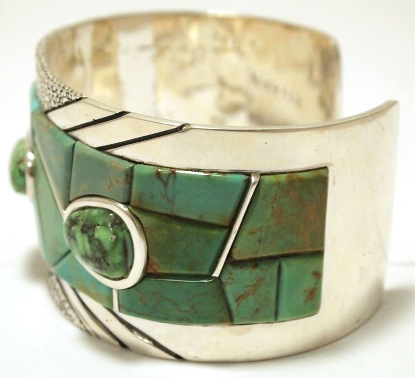 Carico Lake Turquoise Overlay Sterling Silver LARGE Cuff Bracelet -_ Yellow Hair