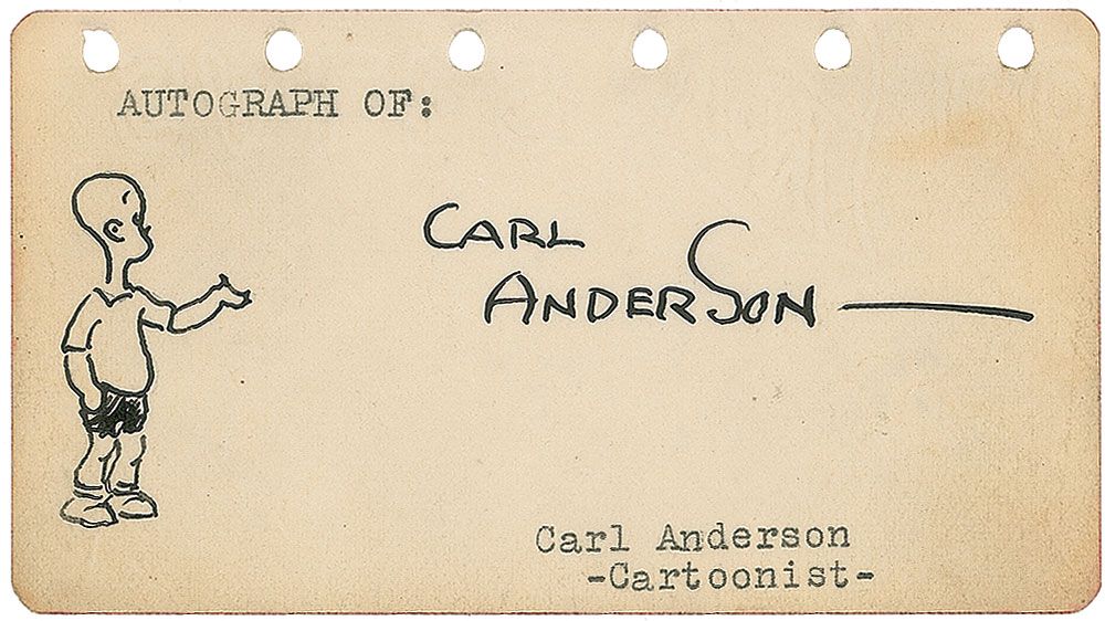 Original vintage signed ink sketch of Henry on an off-white 4.5 x 2.5 page. In fine condition, with some mild edge toning.