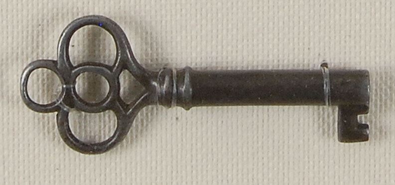 A single iron key with quatrefoil head made by Yale and Town circa 1900, measuring approximately two inches long, recovered from the body of third-class Titanic passenger Carl Asplund. Beautifully archivally triple-cloth-matted and framed with a descriptive plaque and photo of Asplund to an overall size of 17.5 x 13.5. Keys of this type were used to lock and unlock jewelry, document, or small casket boxes. This key was recovered from Asplund’s body, no. 142, by the Mackay-Bennett, and is documented in the inventory of his possessions. Provenance: Asplund Family; Henry Aldridge, May 2011. Asplund and his wife, Selma, had previously lived in the US but had returned to Sweden to raise their family. Having decided to return to the United States, the couple and their children—Filip Oscar, Clarence Gustaf Hugo, Carl Edgar, Lillian Gertrud, and Edvin Rojj Felix—boarded the Titanic at Southampton. When the accident occurred, Carl took possession of all the family’s important items, money, and paperwork—unfortunately, the family’s money and papers were lost. The only survivors were Selma, Lillian, and Felix, who had managed to board lifeboat 15; Lillian, five years old at the time, was one of the last three living survivors and the only one to have actual memories of the ship. An attractive and nicely displayed relic from a tragic loss of the maritime disaster.
