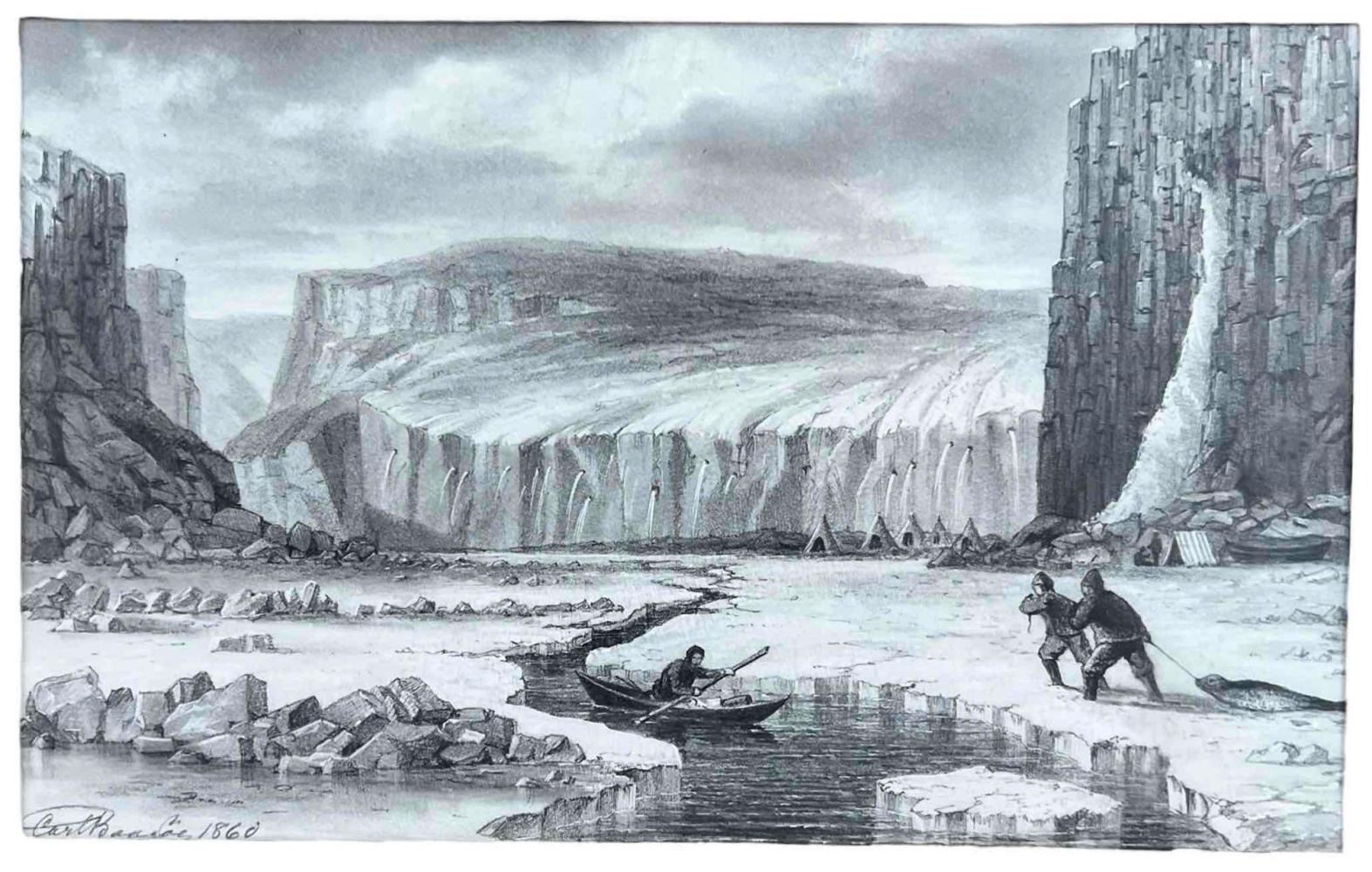 Carl Baagoe 1860 Seal Hunting Scene. Signed Lower Left Corner. Approximately 11.125L x 8.625W in. Sight Approximately 6.625L x 4.125W in.