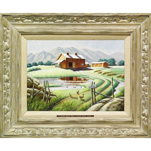 <B>Carl Barks - "A Quack, Quack Here, A Quack, Quack There" Painting Original Art (1970). </B></I> The "Good Duck Artist," Carl Barks, paints a more realistic version of the waterfowl that made him famous in this brightly lit and pastoral farm scene. This oil on canvas painting has been framed to an approximate overall size of 24" x 20.5", and is in Excellent condition. Signed at the lower right.<BR><BR><b>Shipping:</b> Framed - without Glass, Large (<a target="_blank" href="http://www.heritageauctions.com/common/shipping.php">view shipping information</a>)