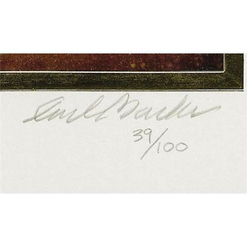 <B>Carl Barks - "Blizzard Tonight" Gold Plate Edition Signed and Numbered Miniature Lithograph, 39/100 (Another Rainbow, 1996).</B></I> This cozy miniature lithograph, depicting Donald and the boys preparing for a cold winter's night in an unusual way, is the fifth in a series of signed, numbered specialty prints. It has been signed, in pencil, by the late Mr. Barks. The print is approximately 11" x 13", with an actual image area of 8.5" x 10.5", and has been matted and framed to an overall size of 15" x 17.5". In Excellent condition; comes with a certificate of authenticity from Another Rainbow. <BR><BR><B>Important notice:</B> Heritage usually auctions material at the rate of 200-250 lots per hour. On some occasions eBay Live bid software or the Internet may not be able to keep up with the pace of the auction. We recommend placing a realistic absentee bid now as insurance to avoid disappointment. Occasionally the auctioneer may eliminate or reject an eBay Live bid, and the auctioneer may also reopen a lot after the close of the eBay live bidding (usually because we missed an audience bid), and may reject your bid even if it shows you as the winning bidder. By bidding via eBay Live, you agree that Heritage may award the lot to another bidder at its sole discretion under the circumstances described above or any other reasonable circumstances. Since eBay bids are not shown to us until we open the lot on the floor, we treat those bids just like floor bids. In most cases the floor responds before the eBay bid is presented to us, due to Internet lag time, so for consistency we have made it a policy that floor bids are always considered first over tie eBay live bids. Also please note that all Heritage lots purchased through eBay Live carry a 22.5% Buyer's Premium. Please make sure you read the Terms and Conditions before you bid. This lot is being auctioned in conjunction with a live floor auction by Heritage Auction Galleries. All final auction and invoice information will be supplied by Heritage Auction Galleries, and all other information should be considered preliminary. Lot:41001 <BR><BR><B>Winning Notification and Billing:</B> After the FINAL session in this auction is complete, Heritage will send e-mail and snail mail invoices. This process normally takes several days. All final auction and invoice information will be supplied by Heritage Auction Galleries, and all other information should be considered preliminary. <BR><BR>This auction will be conducted on a live auction floor and over the Internet through eBay Live. If you choose to place an absentee bid, please take a moment to <font color='#0000ff'><u><a href='http://pages.ebay.com/liveauctions/help/before/laabsentee.html'>learn how eBay Live absentee bidding works</a></u></font><font color='#000000'>