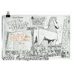 <B>Carl Barks - "Horsing Around with History" Script and Signed Comic Book (Gladstone, 1995).</B></I> This story, written in 1994, was the first Uncle Scrooge adventure by Carl Barks in thirty years. It was to be his final tale of the World's Richest Duck. Included in this group are two Carl Barks scripts: a hand-typed 31-page manuscript done on Barks' pre-computer word processor (the first two pages are original, the rest copied by Barks on his copy machine), complete with photocopied references of items used in the story (illustrations of the Trojan Horse, helmets, etc.); and a copy of the final illustrated script by William Van Horn, the Disney artist selected by Barks on 47 8.5" x 14" sheets (each sheet showing half of the comic book page). Notes to Barks, seeking approval, are hand-written on the script. Also included is a copy of the final printed comic, <B>Uncle Scrooge Adventures</B></I> #33, published by Gladstone in 1995, that has been signed in black marker by Carl Barks, as well as William Van Horn and Geoffrey Blum, who wrote a three-page article on the story in the book. Six exclusive 4" x 6" color photos of Barks and Van Horn working on the project together are an added bonus to the fantastic package, and all are in Excellent condition. The Late Carl Barks was proud of his final Uncle Scrooge story. "Horsing Around with History" has an engaging beginning, a good middle, and a satisfying ending. In short, a classic Carl Barks story! 4 items <BR><BR><B>Important notice:</B> Heritage usually auctions material at the rate of 200-250 lots per hour. On some occasions eBay Live bid software or the Internet may not be able to keep up with the pace of the auction. We recommend placing a realistic absentee bid now as insurance to avoid disappointment. Occasionally the auctioneer may eliminate or reject an eBay Live bid, and the auctioneer may also reopen a lot after the close of the eBay live bidding (usually because we missed an audience bid), and may reject your bid even if it shows you as the winning bidder. By bidding via eBay Live, you agree that Heritage may award the lot to another bidder at its sole discretion under the circumstances described above or any other reasonable circumstances. Since eBay bids are not shown to us until we open the lot on the floor, we treat those bids just like floor bids. In most cases the floor responds before the eBay bid is presented to us, due to Internet lag time, so for consistency we have made it a policy that floor bids are always considered first over tie eBay live bids. Also please note that all Heritage lots purchased through eBay Live carry a 20% Buyer's Premium. Please make sure you read the Terms and Conditions before you bid. </span></font></tr></table></td></tr></table>