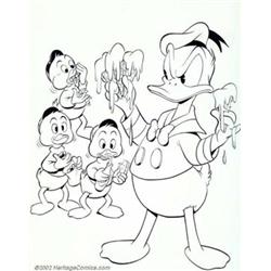 Carl Barks - Original Cover Art for Walt Disney's Comics and Stories #214 (Dell, 1958). Known for many years simply as "The Good Duck Artist," due to the fact that he was forbidden to sign his work, Barks is fondly remembered by many as one of the finest artists ever to touch pen to paper. Although he produced a great body of work, very few of his originals have survived, and those pieces that have are very closely held by discerning collectors worldwide. The emergence into the market of an actual published cover is certainly a cause for excitement, particularly a piece as magnificent as this. Tastefully framed and matted to an overall size of approximately 19" x 16", the image area is approximately 12" x 10". In excellent condition, this is an opportunity that may not present itself again. Important notice: We expect to be auctioning lots at the rate of 200-250 per hour. Sometimes eBay Premier live bid software cannot keep up with that pace, so we strongly recommend that you place a realistic proxy bid now as insurance to avoid disappointment. Also please note that all Heritage/CAA lots purchased through eBay Premier carry a 20% Buyer's Premium. Please make sure you read the Terms and Conditions.