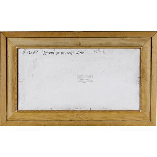 <B>Carl Barks - "Rhythms of the West Wind" Painting Original Art (1969). </B></I> Carl Barks was a multi-talented artist, as he demonstrated with this evocative scene of pure Americana. This 30" x 15" oil on canvasboard painting is marked #12-69 on the back, along with a Carl Barks Studio stamp; it has been framed to an approximate overall size of 39" x 23", and is in Excellent condition. Signed at the lower right.<BR><BR><b>Shipping:</b> Framed - without Glass, Large (<a target="_blank" href="http://www.heritageauctions.com/common/shipping.php">view shipping information</a>)