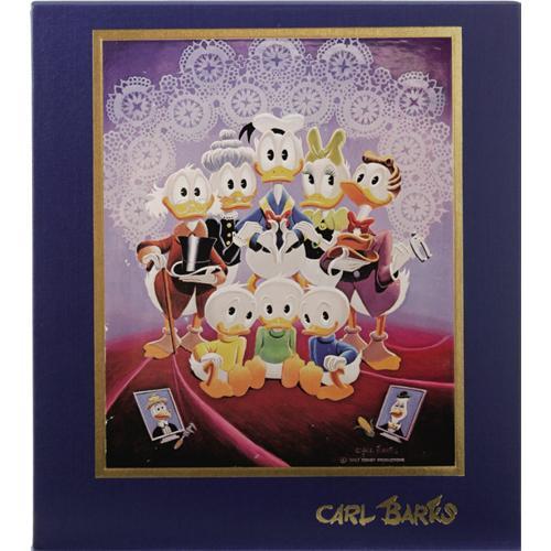 <B>Carl Barks - The Fine Art of Walt Disney's Donald Duck McDuck Edition, Publisher's Proof #57 (Another Rainbow, 1981).</B></I> Here's a beautiful copy of the most lavish book ever produced featuring the fine art Duck paintings of Carl Barks. His legion of fans will need no introduction to this comic book master; he is quite simply "the Good Duck Artist", as he was known in the long years before a few fans like Barbara Boatner and Malcolm Willits tracked down the modest artist. This book reproduces 122 of Barks's Disney paintings, plus a few rare examples of his comic art (including the legendary "Silent Night" story, which was rejected by Disney for orignal publication. Over 300 pages long, this represents the best of the best for Barks collectors! The book was signed "To Theo Holstein" by Barks on the title page. In Excellent condition. <BR><BR><B>Important notice:</B> Heritage usually auctions material at the rate of 200-250 lots per hour. On some occasions eBay Live bid software or the Internet may not be able to keep up with the pace of the auction. We recommend placing a realistic absentee bid now as insurance to avoid disappointment. Occasionally the auctioneer may eliminate or reject an eBay Live bid, and the auctioneer may also reopen a lot after the close of the eBay live bidding (usually because we missed an audience bid), and may reject your bid even if it shows you as the winning bidder. By bidding via eBay Live, you agree that Heritage may award the lot to another bidder at its sole discretion under the circumstances described above or any other reasonable circumstances. Since eBay bids are not shown to us until we open the lot on the floor, we treat those bids just like floor bids. In most cases the floor responds before the eBay bid is presented to us, due to Internet lag time, so for consistency we have made it a policy that floor bids are always considered first over tie eBay live bids. Also please note that all Heritage lots purchased through eBay Live carry a 22.5% Buyer's Premium. Please make sure you read the Terms and Conditions before you bid. This lot is being auctioned in conjunction with a live floor auction by Heritage Auction Galleries. All final auction and invoice information will be supplied by Heritage Auction Galleries, and all other information should be considered preliminary. Lot:41001 <BR><BR><B>Winning Notification and Billing:</B> After the FINAL session in this auction is complete, Heritage will send e-mail and snail mail invoices. This process normally takes several days. All final auction and invoice information will be supplied by Heritage Auction Galleries, and all other information should be considered preliminary. <BR><BR>This auction will be conducted on a live auction floor and over the Internet through eBay Live. If you choose to place an absentee bid, please take a moment to <font color='#0000ff'><u><a href='http://pages.ebay.com/liveauctions/help/before/laabsentee.html'>learn how eBay Live absentee bidding works</a></u></font><font color='#000000'>