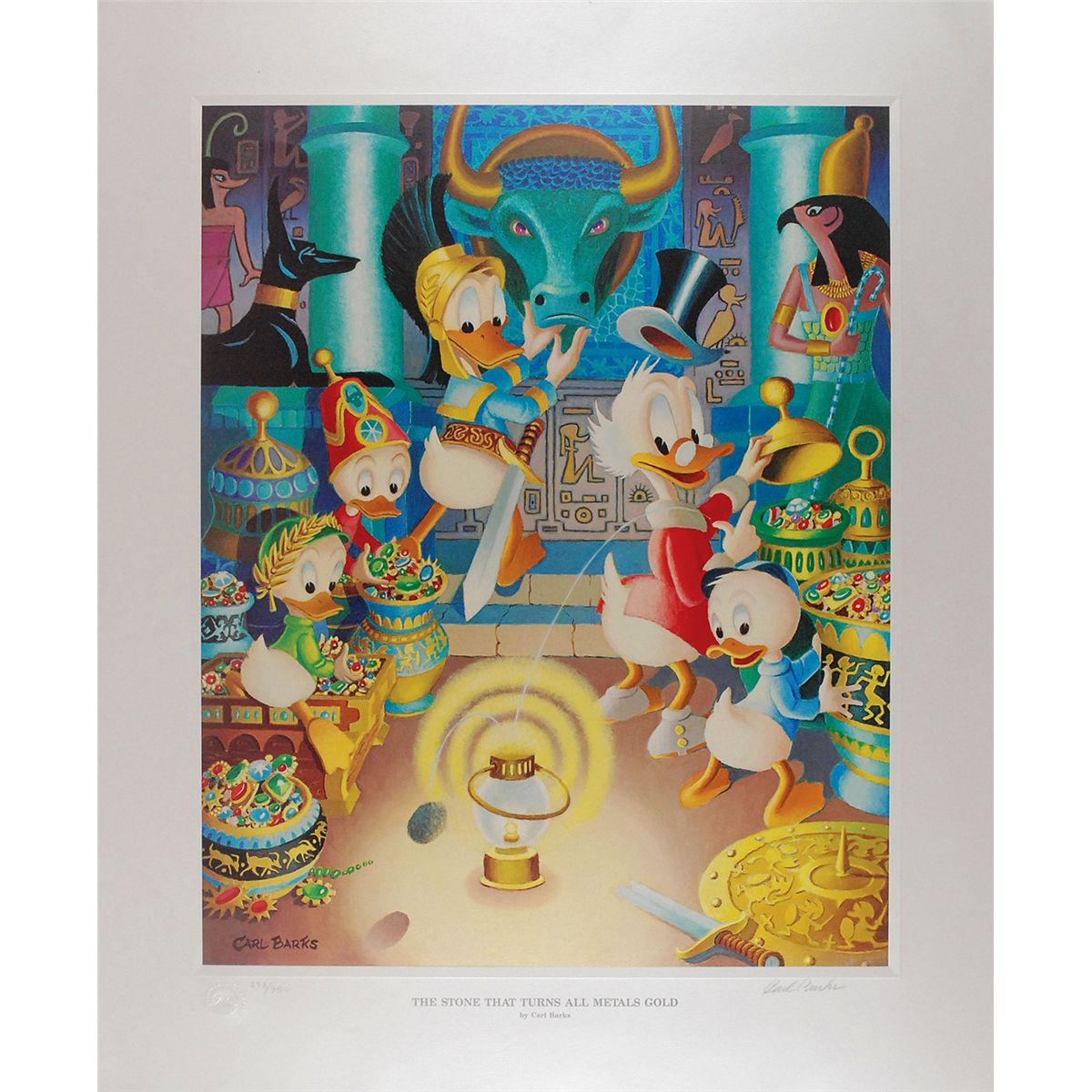 (Another Rainbow Publishing, 1991) Color limited edition 21 x 25.5 lithograph entitled ‘The Stone That Turns All Metals Gold,’ numbered 293/350, signed in the lower border in pencil. Image shows Donald and his family discovering the power of the Philosopher’s Stone. In fine condition. Accompanied by a certificate of authenticity from Another Rainbow Publishing.