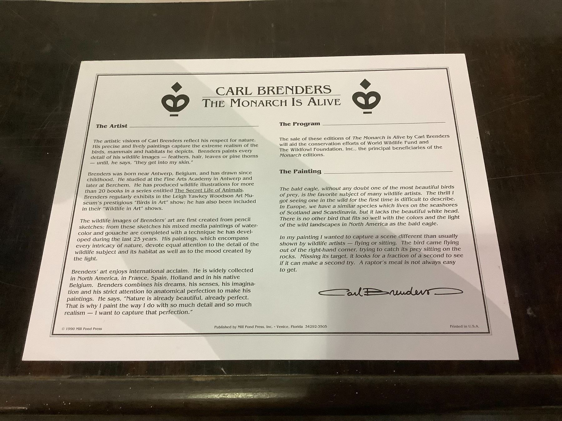 Rare Artist Sample Print from Carl Brenders. this Brenders Sample Print is Titled "THE MONARCH IS ALIVE" -#2349