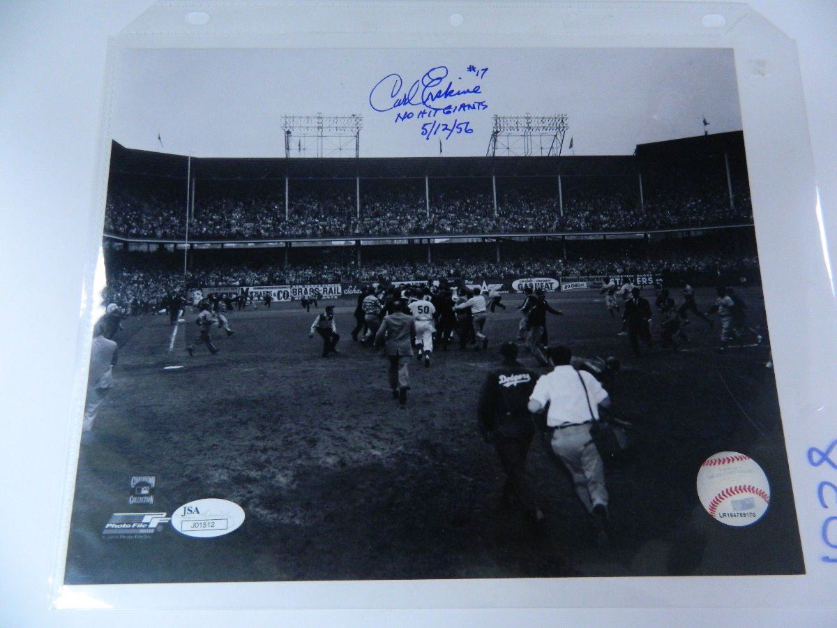 Carl Erskine Signed 8"x10" Inscribed #17 NO HIT GIANTS 5/12/56, Certified Authentic by MLB & JSA
