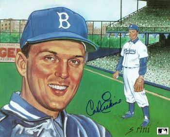 Carl Erskine played his entire career for the Brooklyn & Los Angeles Dodgers from 1948 through 1959. He was a pitching mainstay on Dodger teams which won five National League pennants, peaking with a 1953 season in which he won 20 games and set a World Series record with 14 strikeouts. He pitched two of the NL's seven no-hitters during the 1950s. Carl Erskine has hand signed this Brooklyn Dodgers 8x10 Photo. Certificate of Authenticity from Athlon Sports.