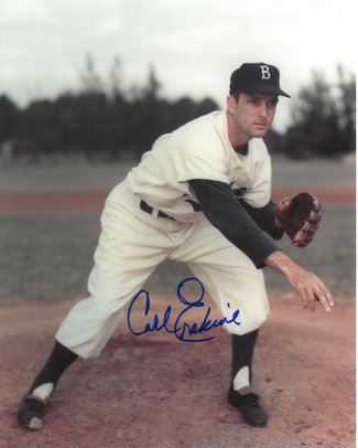 Carl Erskine played his entire career for the Brooklyn & Los Angeles Dodgers from 1948 through 1959. He was a pitching mainstay on Dodger teams which won five National League pennants, peaking with a 1953 season in which he won 20 games and set a World Series record with 14 strikeouts. He pitched two of the NL's seven no-hitters during the 1950s. Carl Erskine has hand signed this Brooklyn Dodgers 8x10 Photo. Certificate of Authenticity from Athlon Sports.