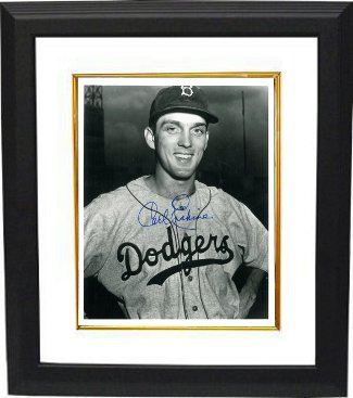 Carl Erskine played his entire career for the Brooklyn & Los Angeles Dodgers from 1948 through 1959. He was a pitching mainstay on Dodger teams which won five National League pennants, peaking with a 1953 season in which he won 20 games and set a World Series record with 14 strikeouts. He pitched two of the NL's seven no-hitters during the 1950s. Carl Erskine has hand signed this Brooklyn Dodgers B&W 8x10 Photo. Certificate of Authenticity from Athlon Sports. Custom White Mat and Premium Black Frame as shown.