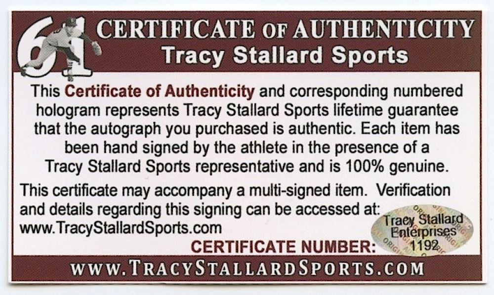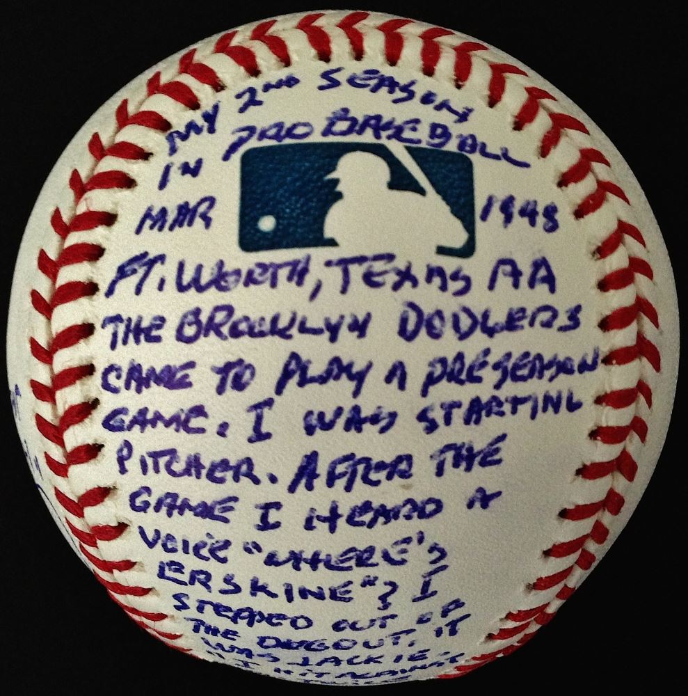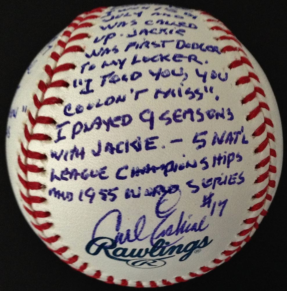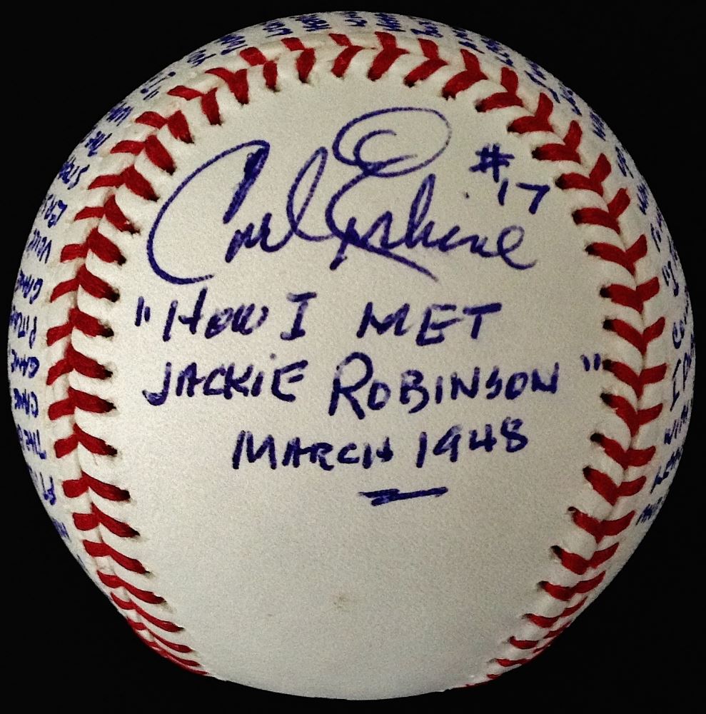 This unique story ball includes a hand-written story and is hand-signed by Carl Erskine. The autograph includes an official Tracy Stallard Enterprises hologram and matching COA for authenticity purposes.