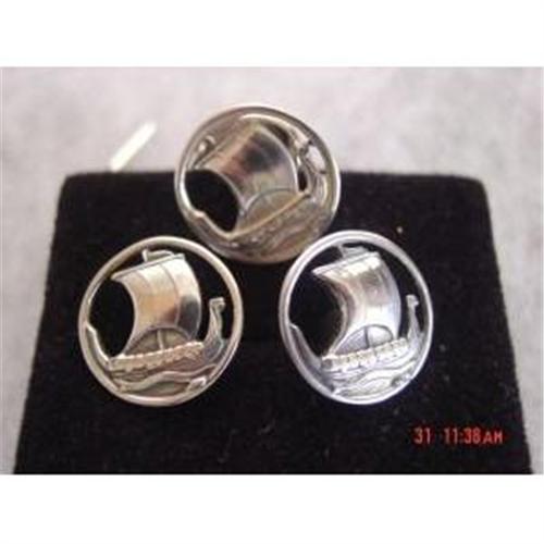 Here is a wonderful!!! Signed COF STERLING DENMARK boat cuff links and tie clasp or tie clip 3 piece set. This COF represents Carl Ove Frydenberg of Copenhagen Denmark. His work from what I can find out was from 1940s-1982. This is one of the older items he did, and my guess is this is a set from the 1940s!!! Excellent condition Finely detailed and engraved boat