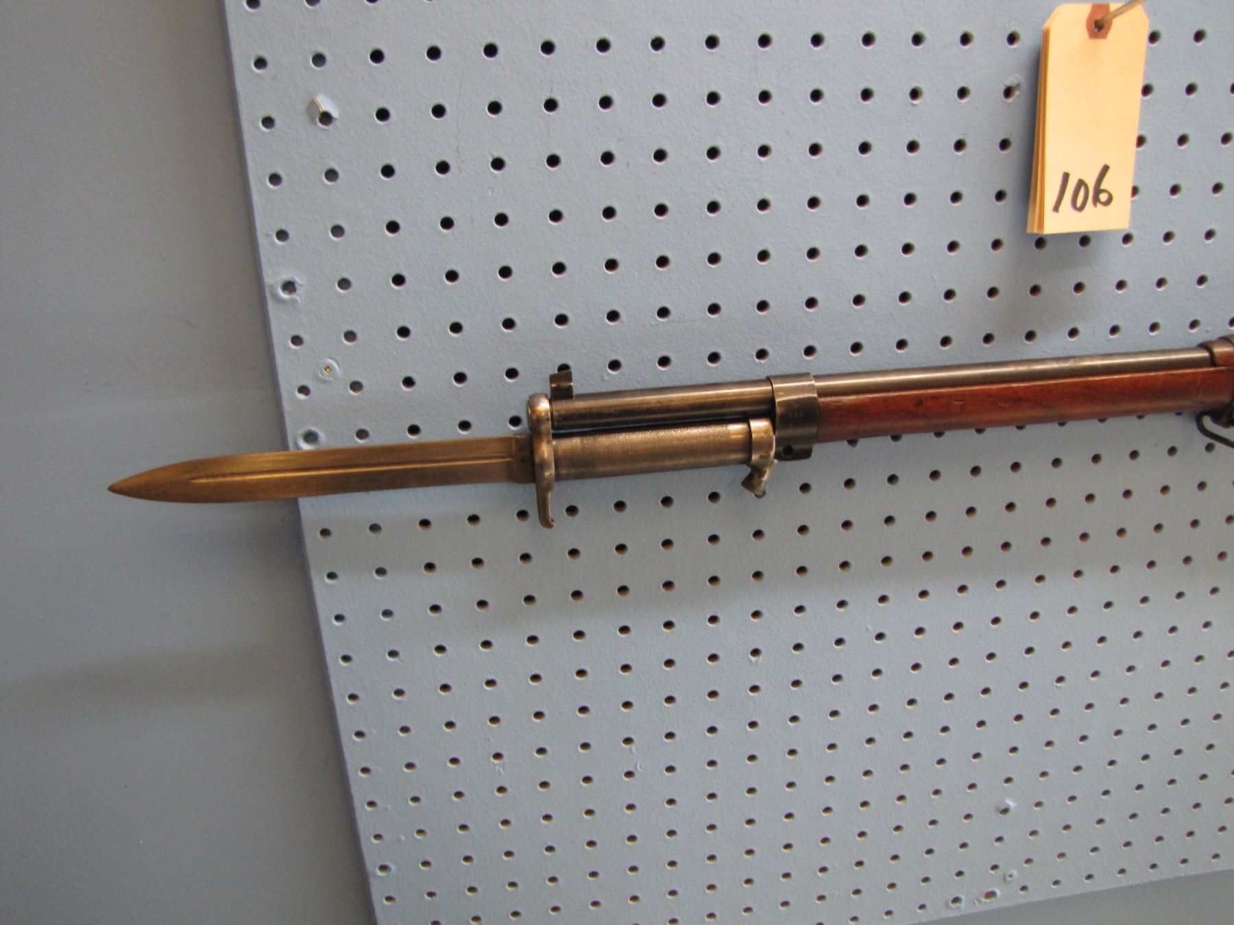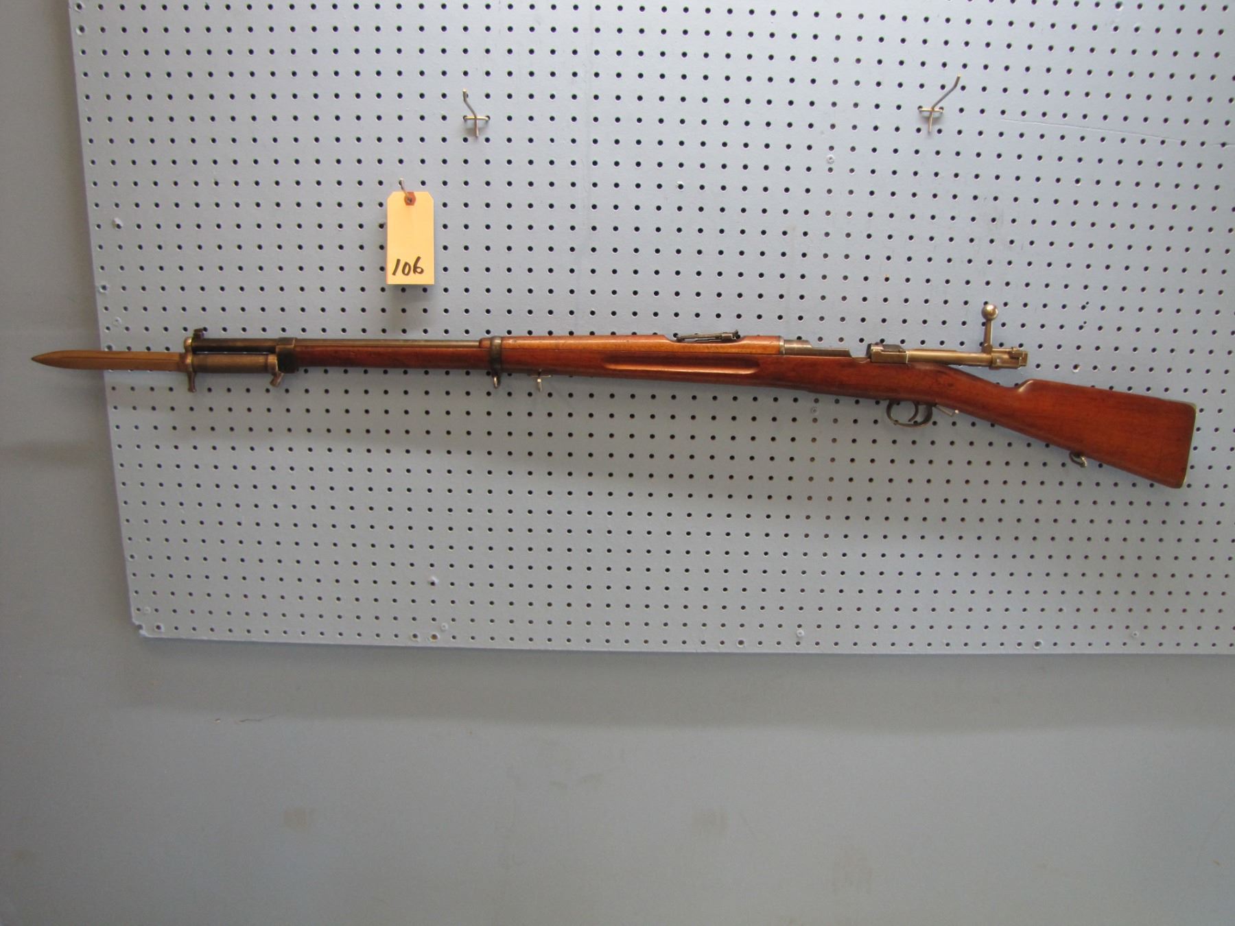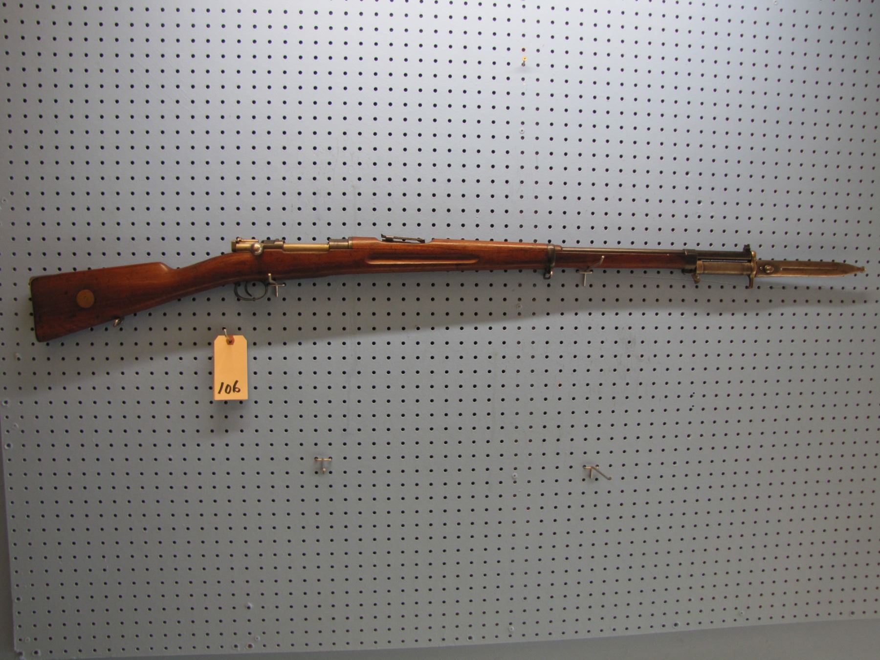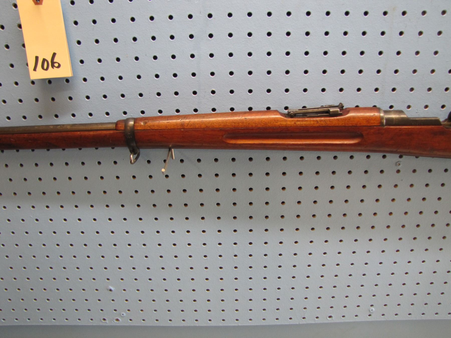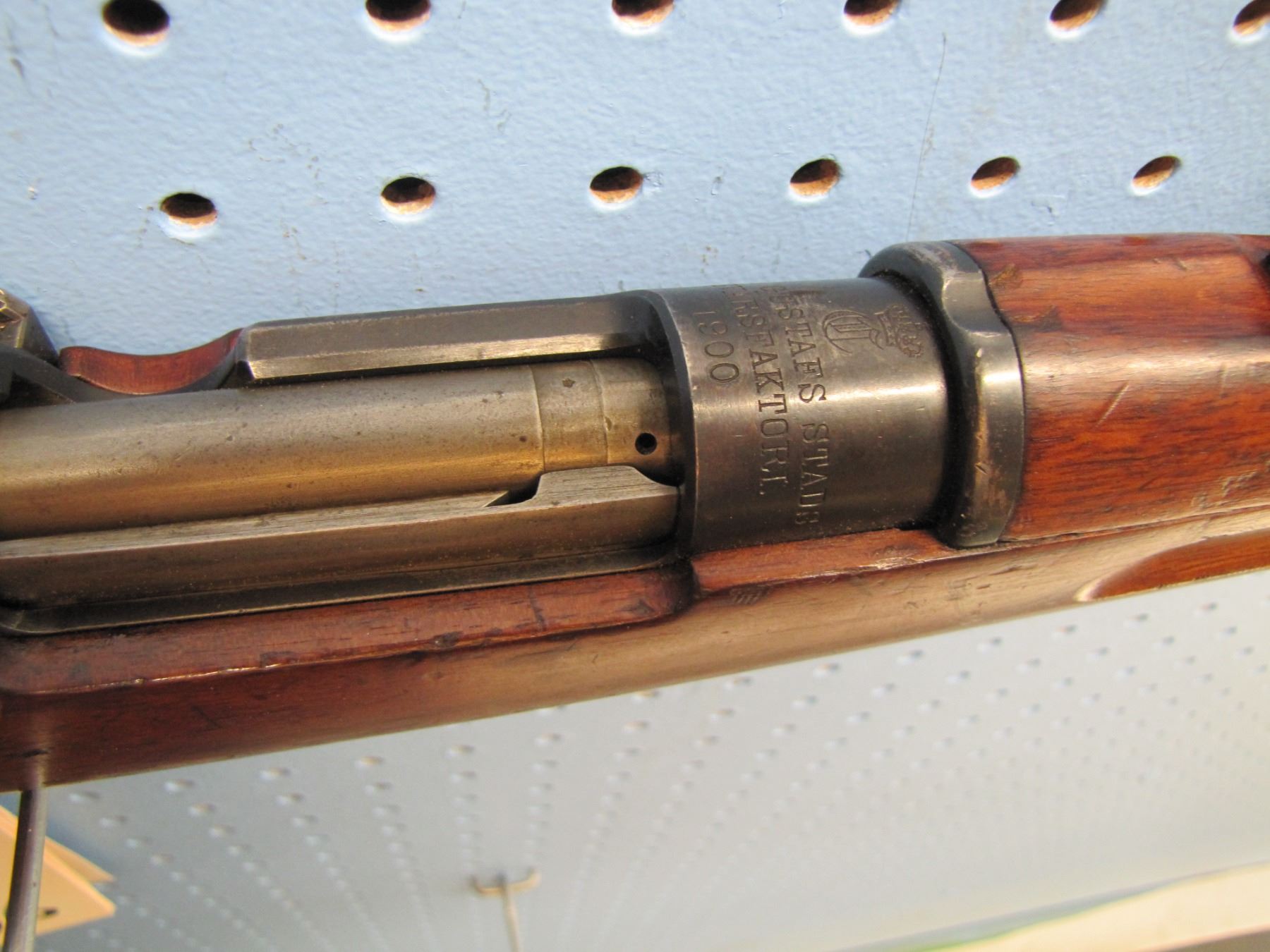 Carl Gustafs Stads 1900; comes with bayonet, 6.5 X 55 cal, matching serial numbers except bayonet, 29 1/2" barrel, nice bore. S/N 62219