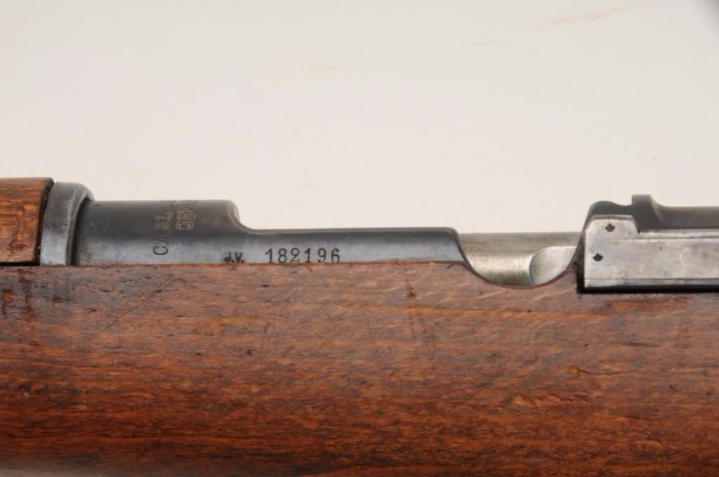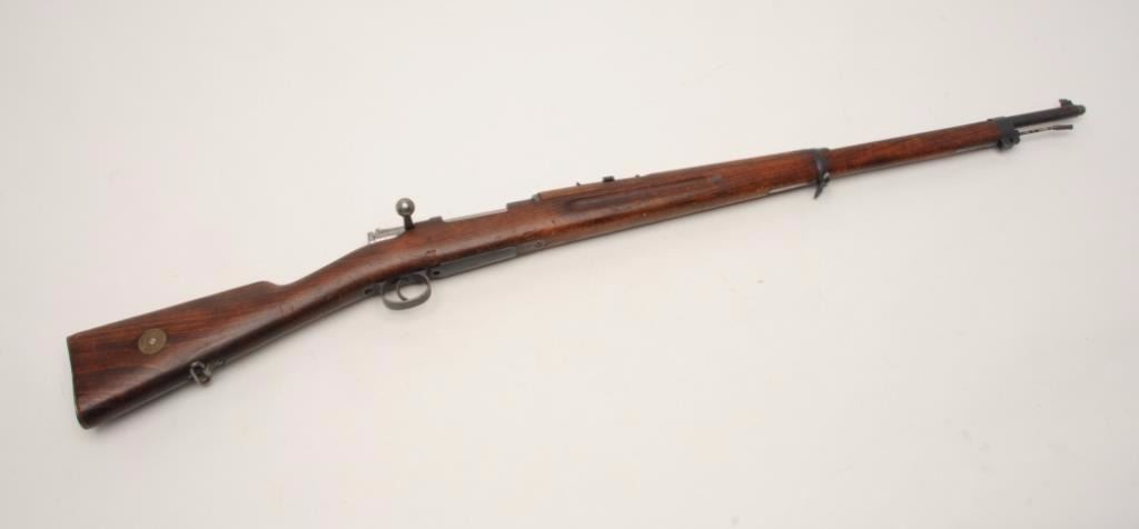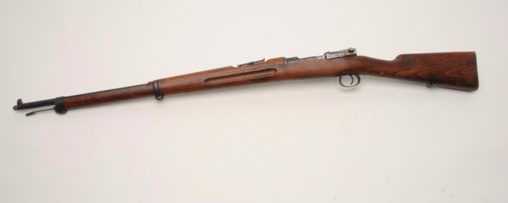 Carl Gustafs Swedish Mauser bolt action rifle, 6.5 x55 caliber, serial #182196. The rifle is in good overall condition with 29” barrel with a threaded muzzle, post front and military tangent style rear sight. Thebarrel retains a significant amount of its blued finish with moderate surface rust due to poor storage noted at the muzzle. The barrel is also import marked. The receiver retains nearly all of its military finish and is dated 1906. All visible serial numbers are matching and the rifle includes the cleaning rod, which is unfortunately bent. The smooth wood stock is in good condition showing handling and use with small mars andcompressions noted. The butt stock ends with a smooth, metal butt plate and retains the brass disc on the left side. The bore is good, the action crisp and markings are sharp on this desirable Swedish Mauser. Est.:$150-$300. (C+R).