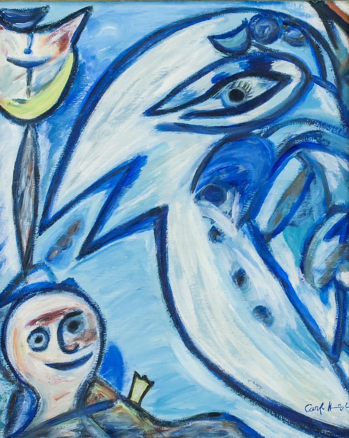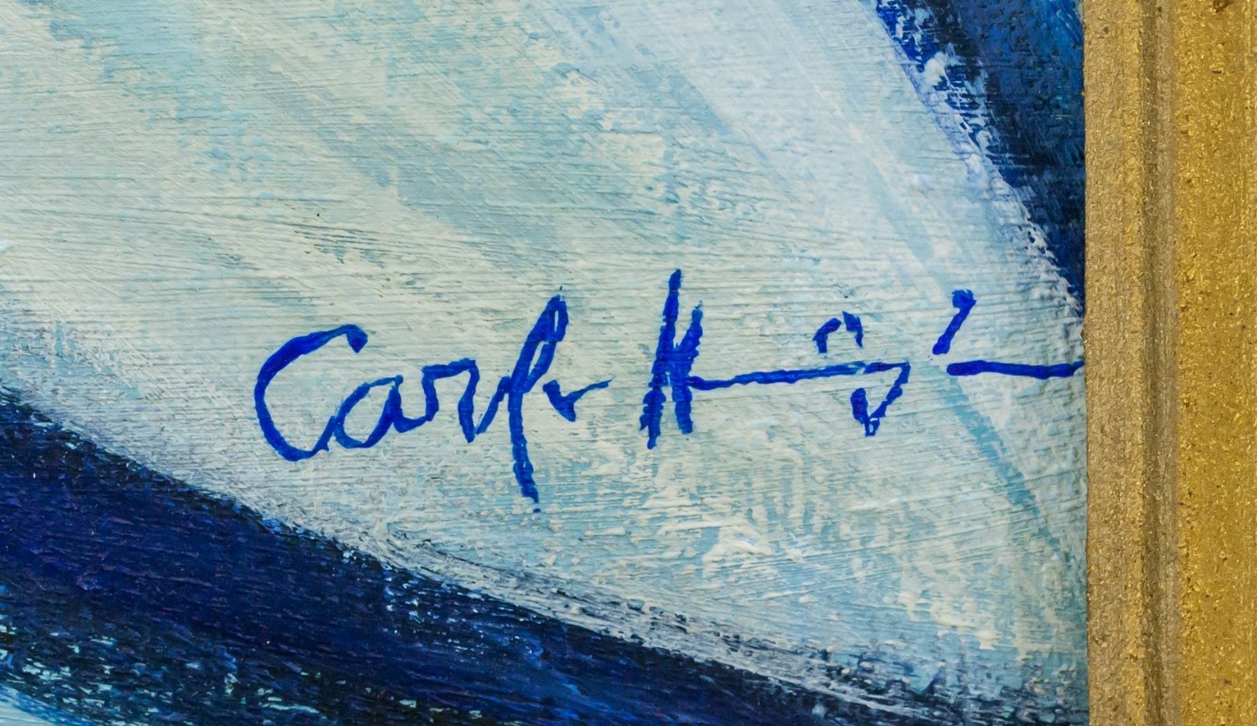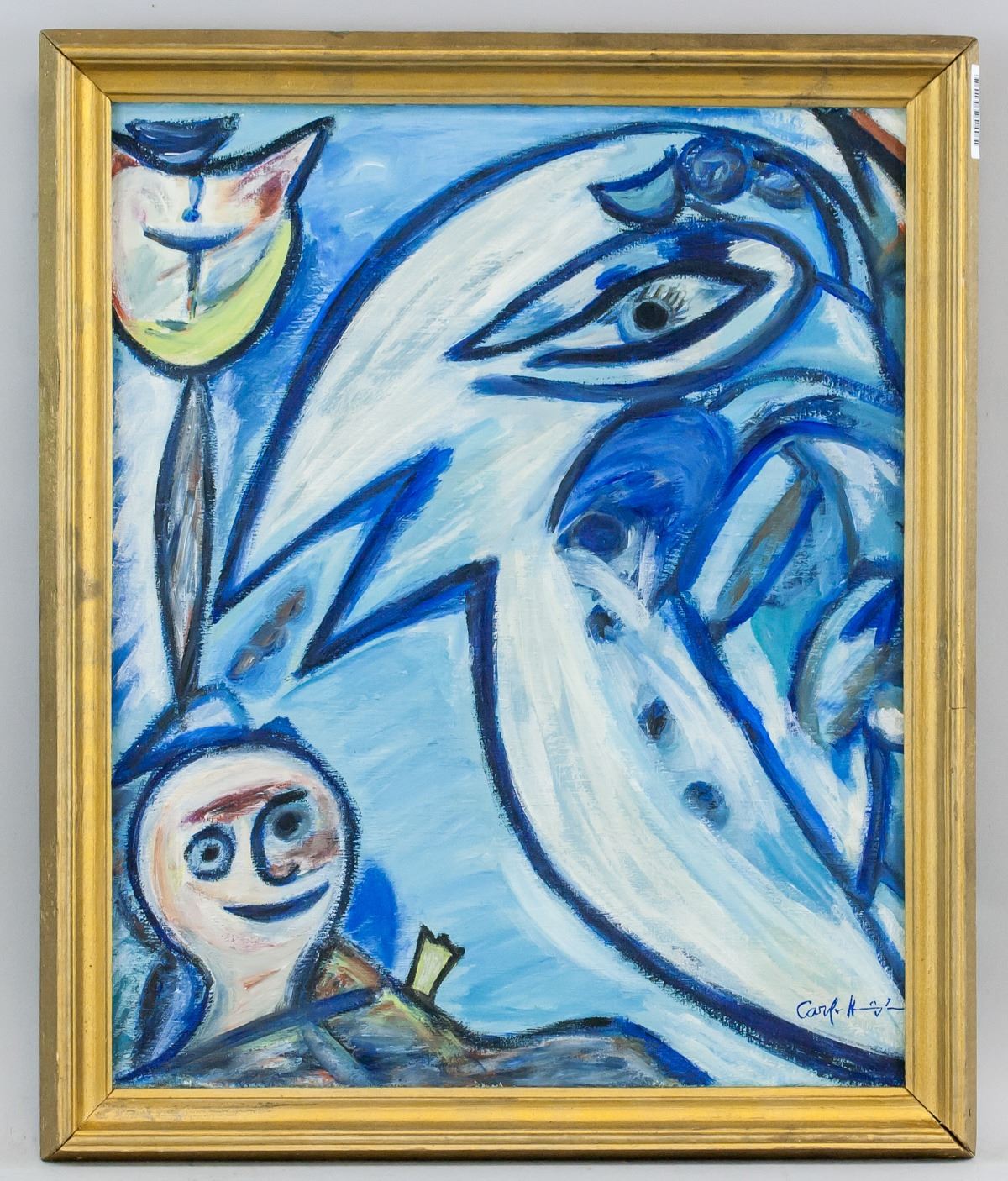 Oil on canvas, framed. Featuring a portrait composition. Signed Carl H on the lower right corner. Attributed to Carl Henning Pedersen (1913-2007, Danish). 46 x 37.5 cm (18.25 x 14.75 in), Frame: 53.5 x 44.5 cm (21 x 17.5 in). PROVENANCE: This item has limited provenance from a Southern Ontario estate