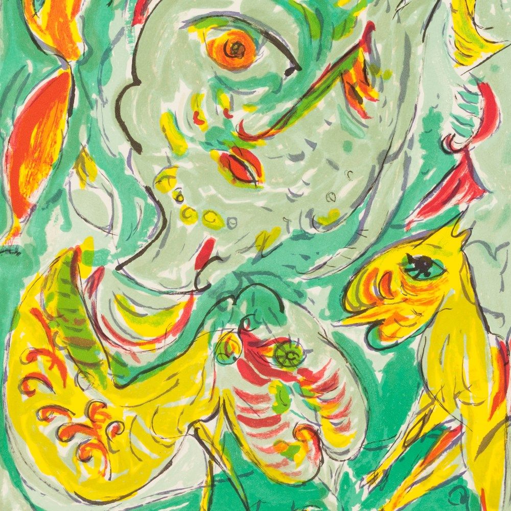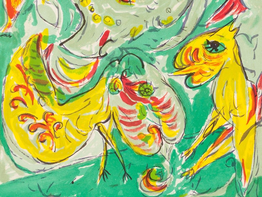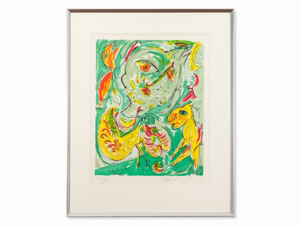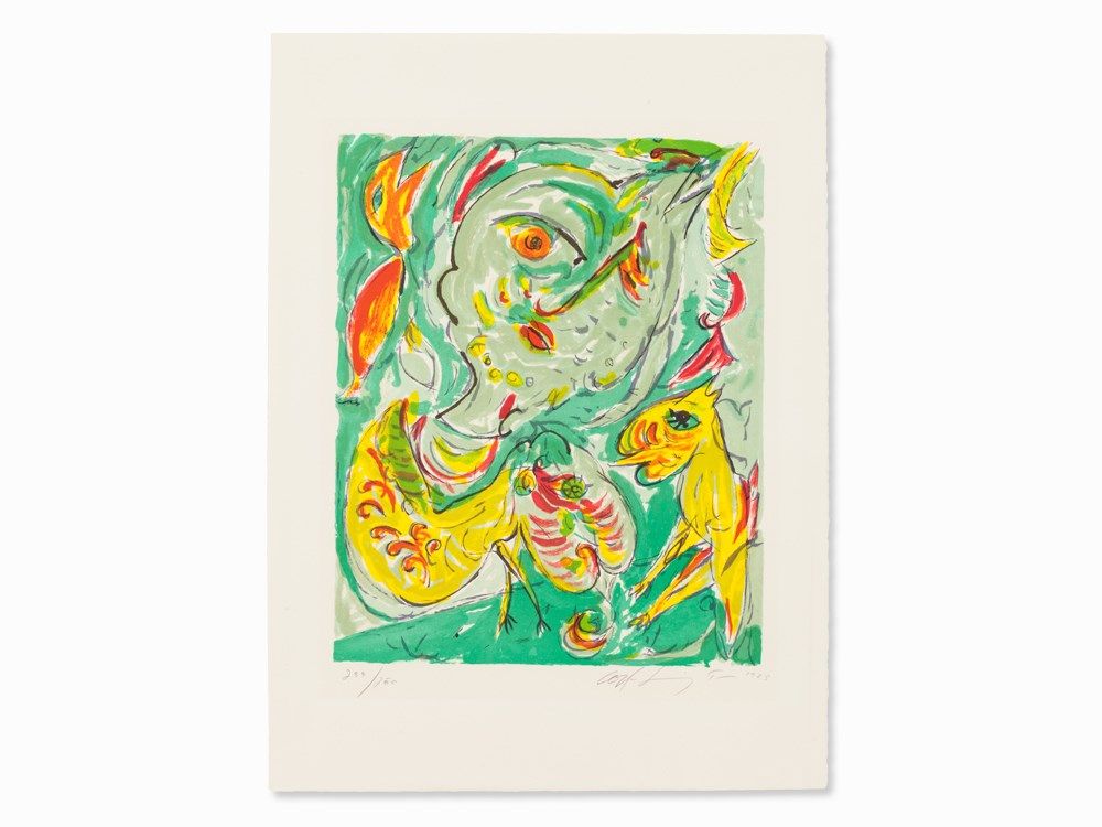 Because of his colorful, magical and imaginative work Carl-Henning Pedersen is considered the ‘Scandinavian Chagall’; lithographs in colors by the artist fetch up to 2,400 euro at international auctions