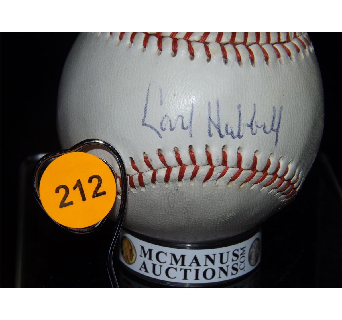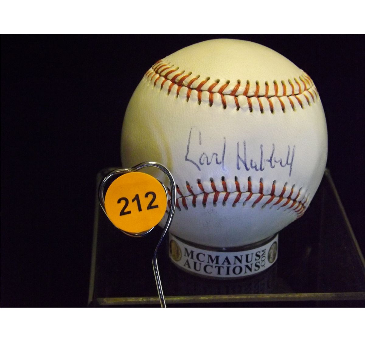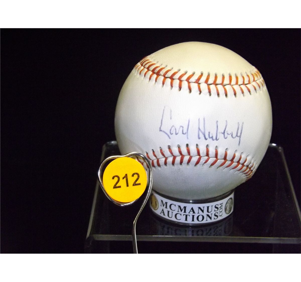 Carl Hubbell Autographed Baseball. Wilson "GO GO SOX" Official League Baseball. Appraised or estimated retail value $1300. COA by Christopher Morales. All Sales Final. Please see terms and conditions of auction.