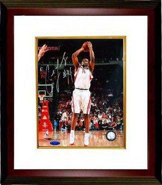 On June 28, 2007, Carl Landry was drafted as the 31st overall pick in the 2007 NBA Draft by the Seattle SuperSonics with the 1st pick in the 2nd round. His agent helped with his trade to the Houston Rockets for a future second round pick. Landry sat out 33 of the first 36 regular season games of his rookie season. Later in the season he got quality playing time and stepped up for the Rockets with a 63 FG%, while helping fill in for injured NBA All Star teammate, Yao Ming. He became a key role player for the Rockets' 22 game winning streak, the third longest in NBA history. He was named to the NBA All-Rookie Second Team. Carl Landry has hand signed this Houston Rockets 8x10 Photo. Tri-Star Hologram and Certificate of Authenticity from Athlon Sports. Custom White Mat and Premium Mahogany Color Framed as shown.