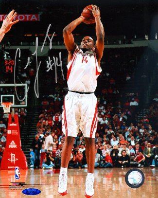 On June 28, 2007, Carl Landry was drafted as the 31st overall pick in the 2007 NBA Draft by the Seattle SuperSonics with the 1st pick in the 2nd round. His agent helped with his trade to the Houston Rockets for a future second round pick. Landry sat out 33 of the first 36 regular season games of his rookie season. Later in the season he got quality playing time and stepped up for the Rockets with a 63 FG%, while helping fill in for injured NBA All Star teammate, Yao Ming. He became a key role player for the Rockets' 22 game winning streak, the third longest in NBA history. He was named to the NBA All-Rookie Second Team. Carl Landry has hand signed this Houston Rockets 8x10 Photo. Tri-Star Hologram and Certificate of Authenticity from Athlon Sports.