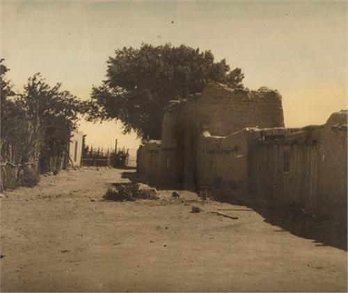 Carl Moon (1879-1948). Pueblo Noon. 13 1/2" x 16" hand-colored photograph.Unsigned from artist's estate. (est $1,000-2,000)