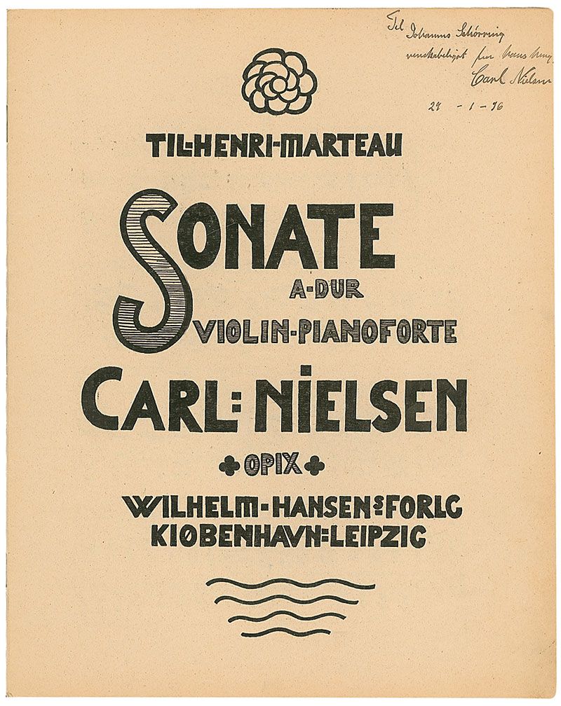 Important Danish composer (1865–1931) best known for his six grandly scaled symphonies, a number of which bear such evocative subtitles as ‘The Expansive’ (No. 3) and ‘The Inextinguishable’ (No. 4). Sheet music to ‘Sonata in A-Major,’ 10.25 x 13.25, 35 pa