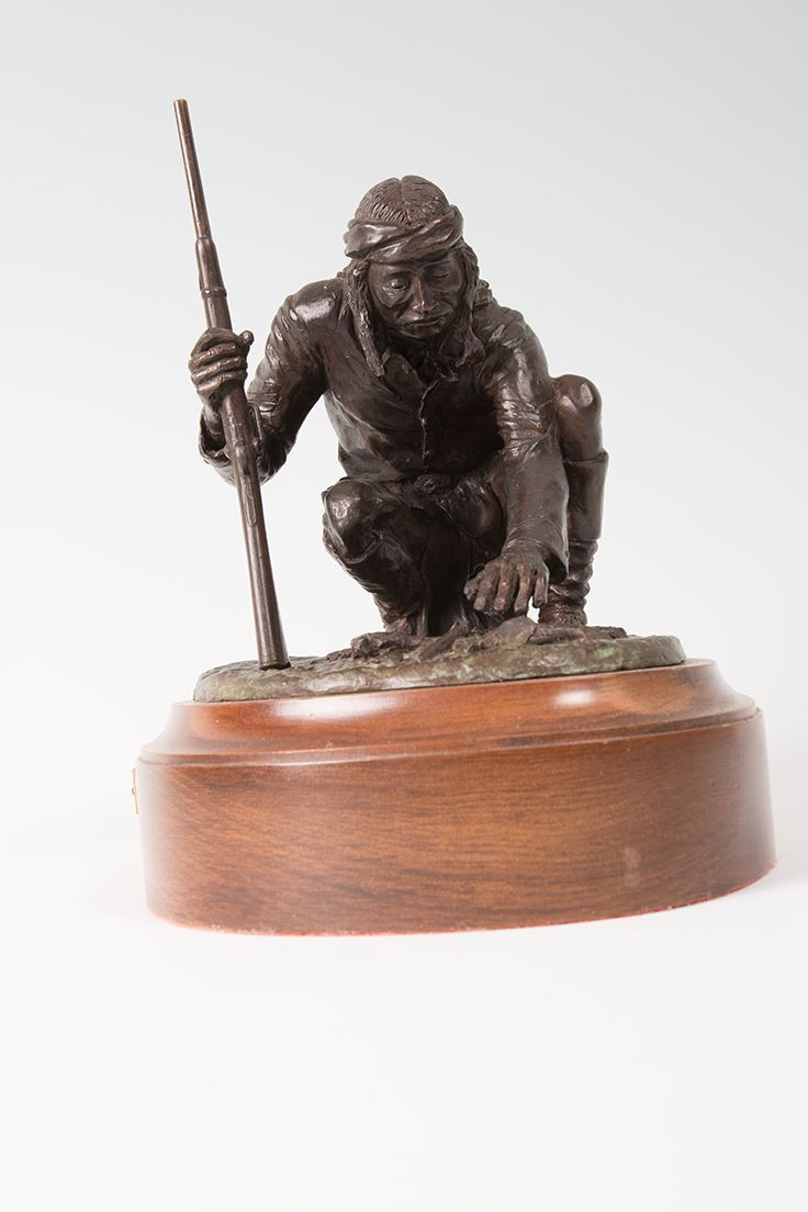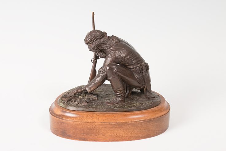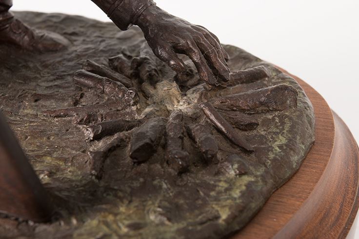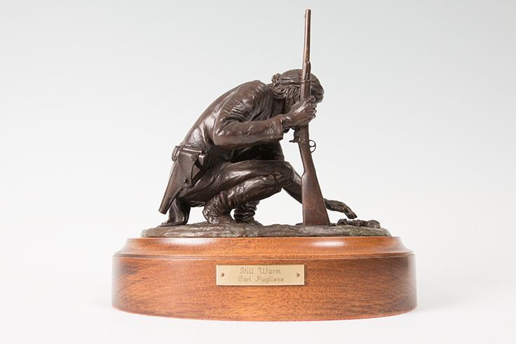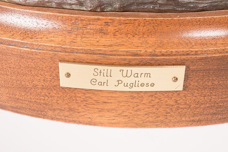 Carl Pugliese (1918-1982). Still Warm. 6" x 8" x 5" bronze on custom walnut base. Inscribed: © 1980 19/30 STILL WARM CARL PUGLIESE .