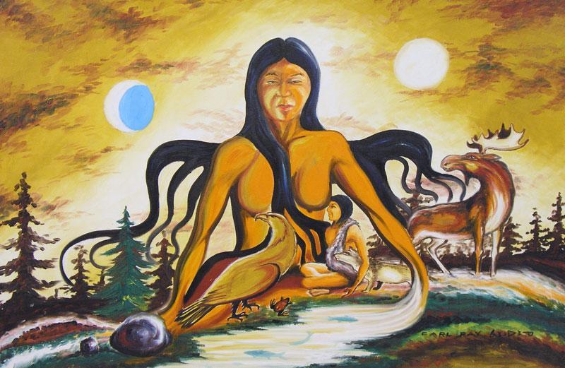 Canadian [1943-1978] GUARDIAN SPIRIT acrylic on board 24 x 36 in. (61 x 91.4 cm) signed
