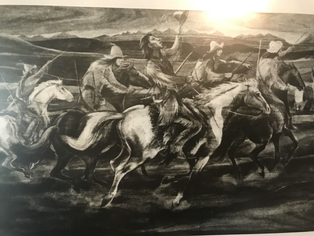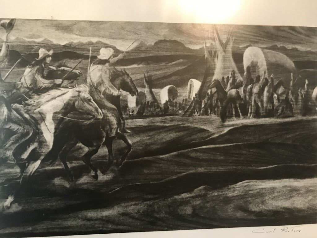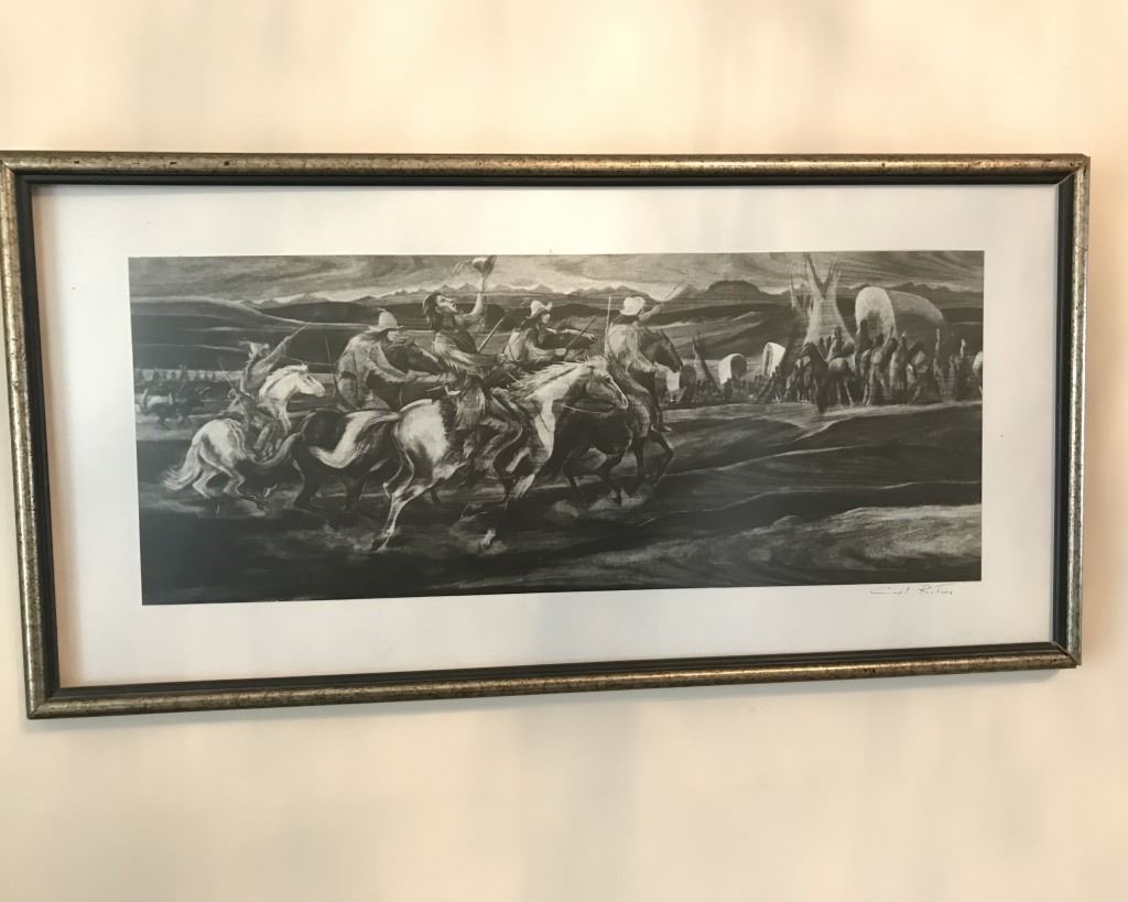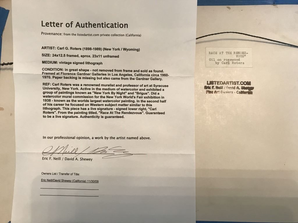 Well Known Artist Titled "Race at the Rendezvous" C/W certificate of authenticity. 24" X 12.5"
