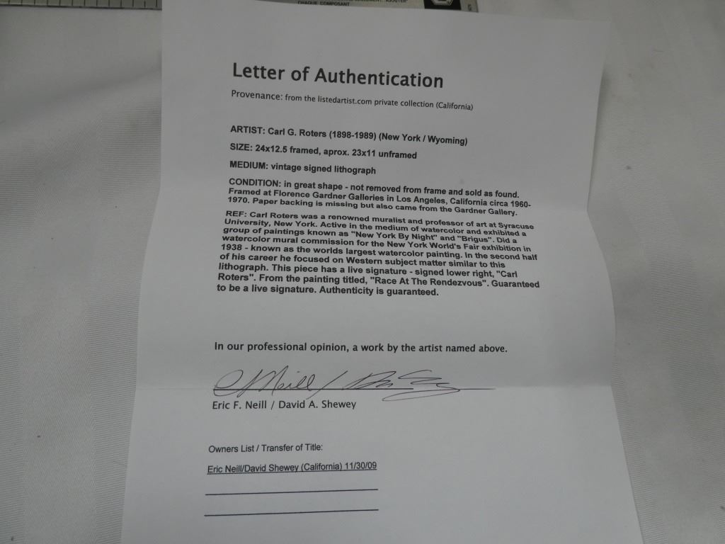 Well Known Artist Titled Race at the Rendezvous C/W certificate of authenticity. 24 X 12.5 He was born in Brooklyn. He apprenticed with