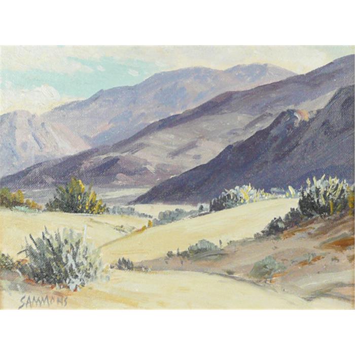 Carl Sammons (1883-1968) Oil on Board Landscape of Palm Springs Sign lower left 1945 6" x 8"