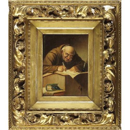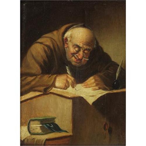 Carl Schleicher, Oil on panel, The Scribe