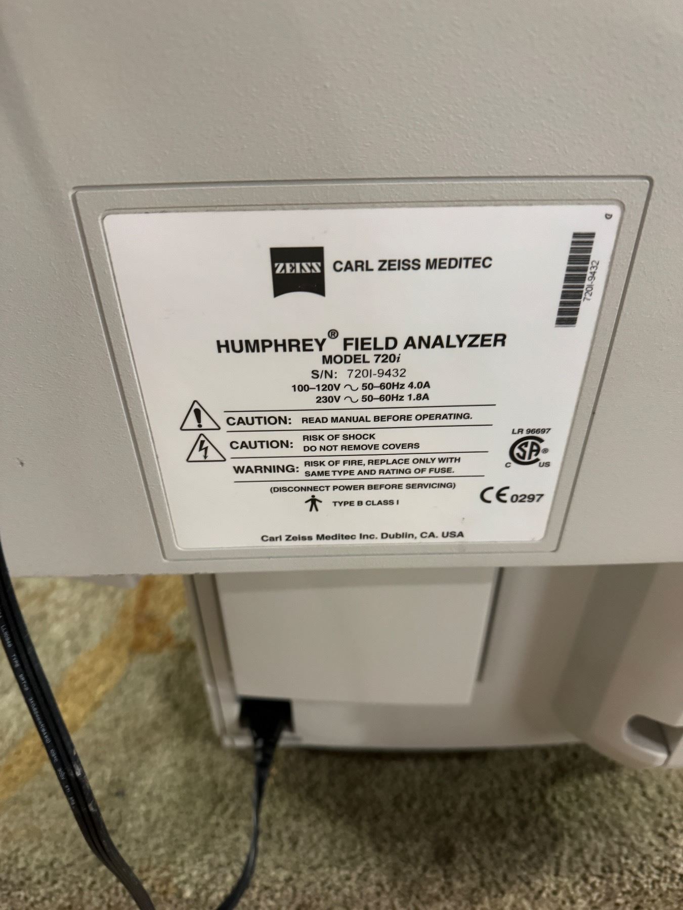 Carl Zeiss Humphrey 720 Perimeter Field Analyzer II eye test Maxine