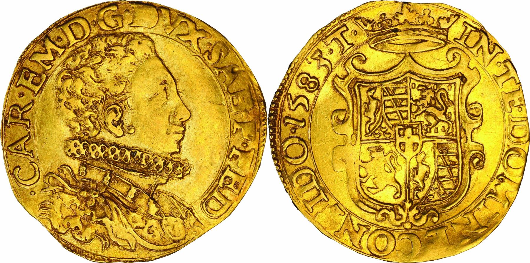 Carlo Emanuele I 1580-1630 , Doppia, II Tipo, Torino, 1583 T, AU 6.56 g. Ref : Cud. 665f (R5), MIR 579e, Biaggi 492c, Fr. 1049