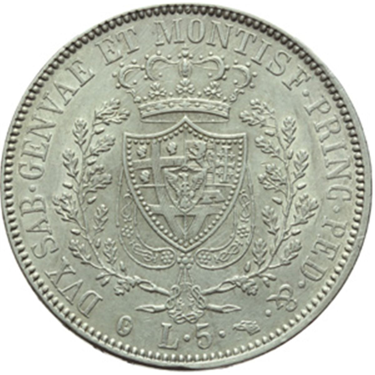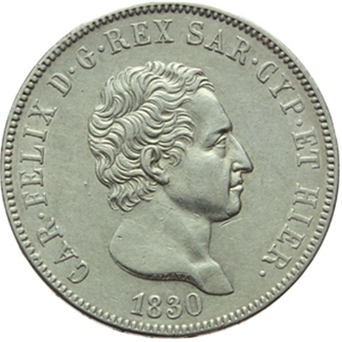 Casa Savoia - Regno di Sardegna - Regno di Italia. Regno di Sardegna. Carlo Felice (1821-1831). 5 lire 1830 T. Pag. 79a. Mont. 70. AG. R. SPL/qFDC.