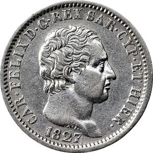 Casa Savoia - Regno di Sardegna - Regno di Italia. Regno di Sardegna. Carlo Felice (1821-1831). Lira 1827 T. Pag. 102. Mont. 95. AG. BB+.