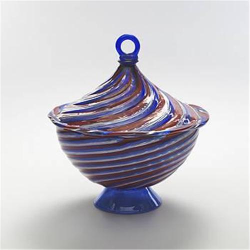 Carlo Scarpa lidded bowl M.V.M. Cappellin Italy, c. 1930 glass 9 dia x 8.75 h inches Signed with three line acid stamp. : [MVM Cappellin Murano]. Provenance: Collection of Franco Deboni, Italy Christie's New York, November 30th, 2000, sale #8481, lot 24 Private collection