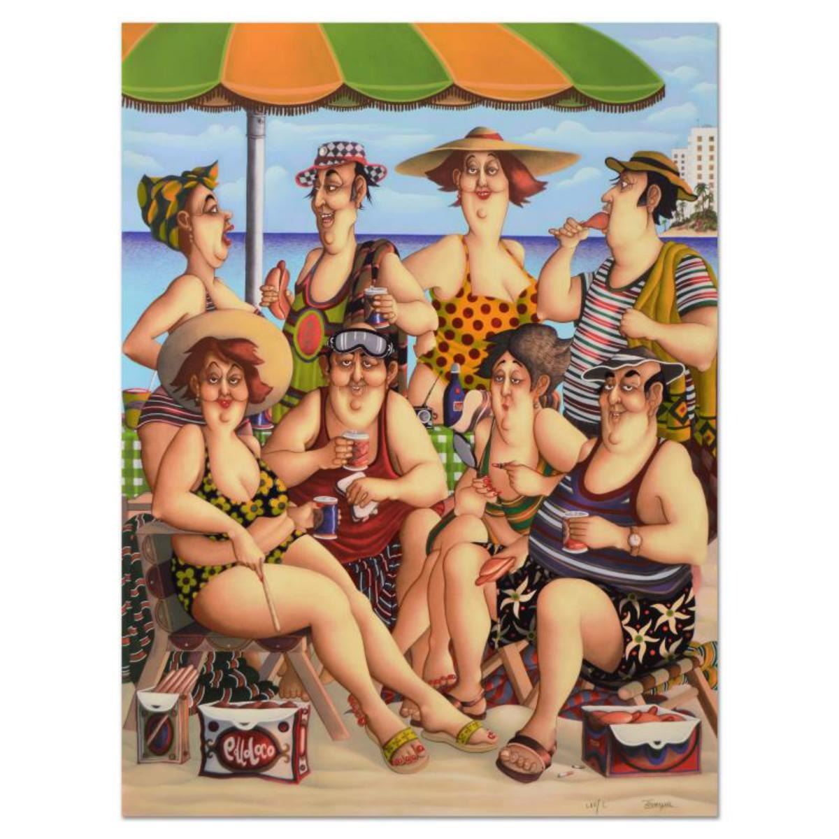 Carlos Ferreyra, "At the Beach" Limited Edition Serigraph on Clay-Board, Numbered and Hand Signed wi