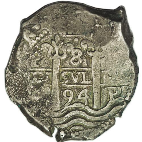 <B>Carlos II cob 8 Reales 1694VR, </B></I>KM26, nice VF+, clear date and P mintmark, assayer not readable.<BR><BR><b>Shipping:</b> Coin/Currency (<a target="_blank" href="http://www.heritageauctions.com/common/shipping.php">view shipping information</a>)