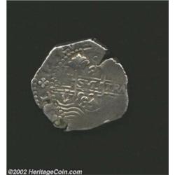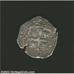 Carlos II cob 8 reales 1684 assayer V, KM24, Cal-216, VF with two full dates and a noticeable flan crack. Important notice: We expect to be auctioning lots at the rate of 200-250 per hour. Sometimes eBay Premier live bid software cannot keep up with that pace, so we strongly recommend that you place a realistic proxy bid now as insurance to avoid disappointment. Also please note that all Heritage/CAA lots purchased through eBay Premier carry a 20% Buyer's Premium. Please make sure you read the Terms and Conditions.