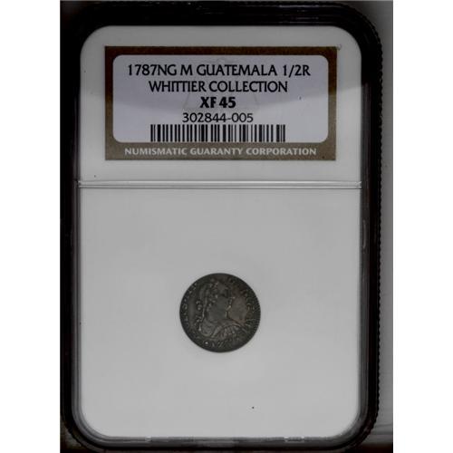 <B>Carlos III 1/2 Real 1787NG-M, </B></I>KM32.2a, XF45 NGC, deeply toned with remarkably sharp details, as nice as one can expect to see for this very scarce type. Ex-Ray Johnson Collection.
