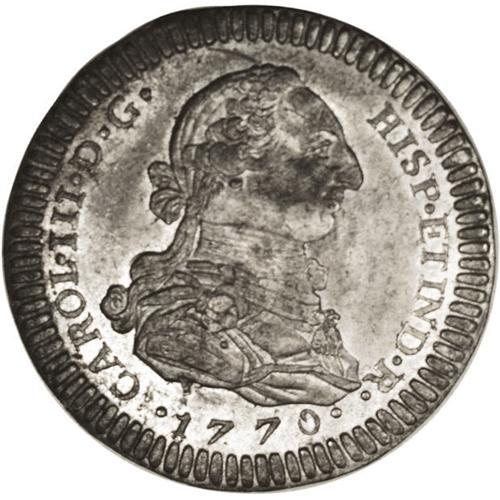 Carlos III 2 Reales Die Trial 1770, uniface striking of