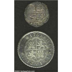 Carlos III 4 Reales 1761S-JV, KM396.2, VF+ toned luster, plus an early 1 Real of Mexico, Mo-F, crude