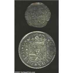 Carlos III 4 Reales 1761S-JV, KM396.2, VF+ toned luster, plus an early 1 Real of Mexico, Mo-F, crude Fine. 2 coins Important notice: We expect to be auctioning lots at the rate of 200-250 per hour. Sometimes eBay Premier live bid software cannot keep up with that pace, so we strongly recommend that you place a realistic proxy bid now as insurance to avoid disappointment. Also please note that all Heritage/CAA lots purchased through eBay Premier carry a 20% Buyer's Premium. Please make sure you read the Terms and Conditions.