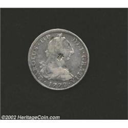 Carlos III 8 Reales 1772-MF (inverted), KM106.1, Nice F-VF, single Chinese chopmark on the obverse. A rare error and seldom available in the market. Important notice: We expect to be auctioning lots at the rate of 200-250 per hour. Sometimes eBay Premier live bid software cannot keep up with that pace, so we strongly recommend that you place a realistic proxy bid now as insurance to avoid disappointment. Also please note that all Heritage/CAA lots purchased through eBay Premier carry a 20% Buyer's Premium. Please make sure you read the Terms and Conditions.