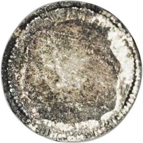 <B>Carlos III Die Trial 1/2 Real 1770, </B></I>uniface striking in tin of a pattern die for the obverse of projected Spanish and colonial coinage. Deeply toned AU, very sharp features, extremely rare and historically significant.