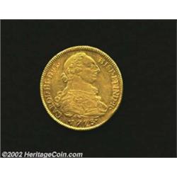 Carlos III Gold 8 Escudos 1773JM, KM82.1, monogram to left, Choice XF-AU. Important notice: We expect to be auctioning lots at the rate of 200-250 per hour. Sometimes eBay Premier live bid software cannot keep up with that pace, so we strongly recommend that you place a realistic proxy bid now as insurance to avoid disappointment. Also please note that all Heritage/CAA lots purchased through eBay Premier carry a 20% Buyer's Premium. Please make sure you read the Terms and Conditions.