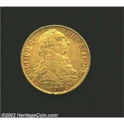 Carlos III Gold 8 Escudos 1776S-CF, KM409.2, Well struck CF+, tiny rim flaw below the date. Importan